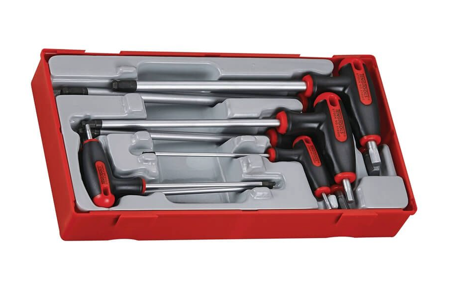 These Teng Tools Hex keys with T handles, each have a short arm and a long arm. The short arm allows excellent leverage, allowing easy tightening and loosening. The long arm of the Hex key has a ball point head, which allows a working angle of up to 30 degrees, and therefore improves access.