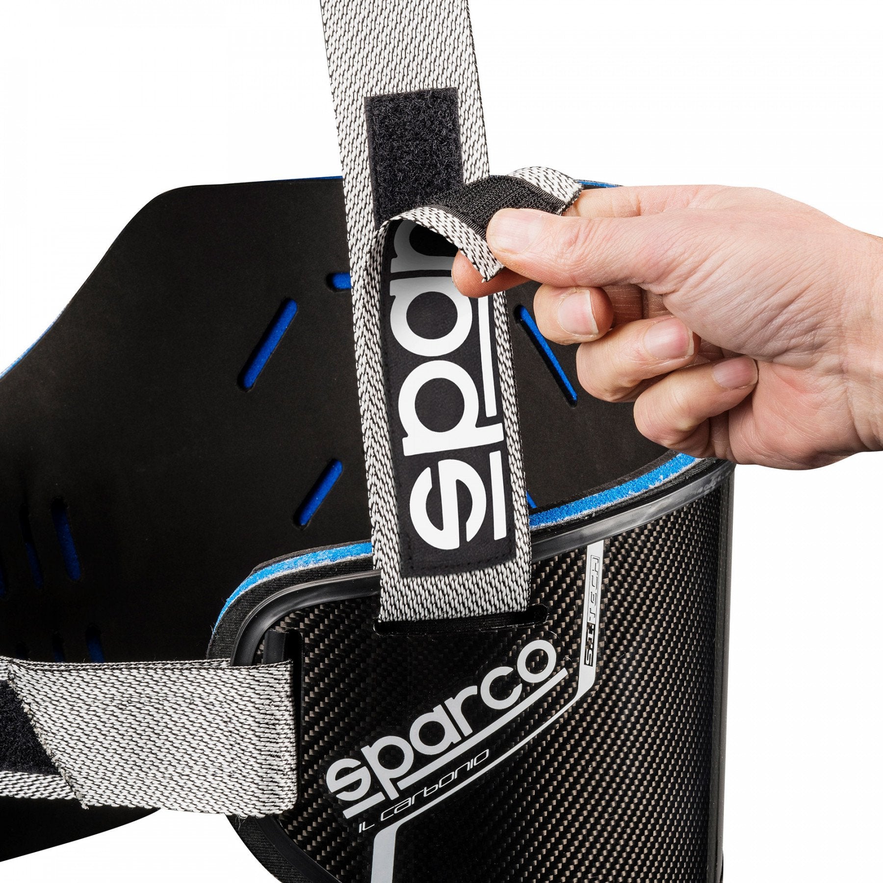 Entirely designed and developed in Italy, thanks to the multi-year experience of SPARCO® in the field of composite materials, the new corset protection CARBON for kart pilots offers maximum protection combined with an incredible lightness that only the carbon fiber shells can give. The two inner layers of foam material with shock absorbing function (EPDM and PU have been specifically sized for the application) derive from the experience gained on Racing seats and on different applications for Supercars. CARBON is equipped with ultra-light tape of the latest generation, the same used on FIA approved belts to offer the highest level of resistance, safety and comfort for the pilot who wants to wear the top of the corset protection line. CARBON, in addition to having a wide range of sizes, is further adjustable in height, thanks to a new ultra-strong velcro